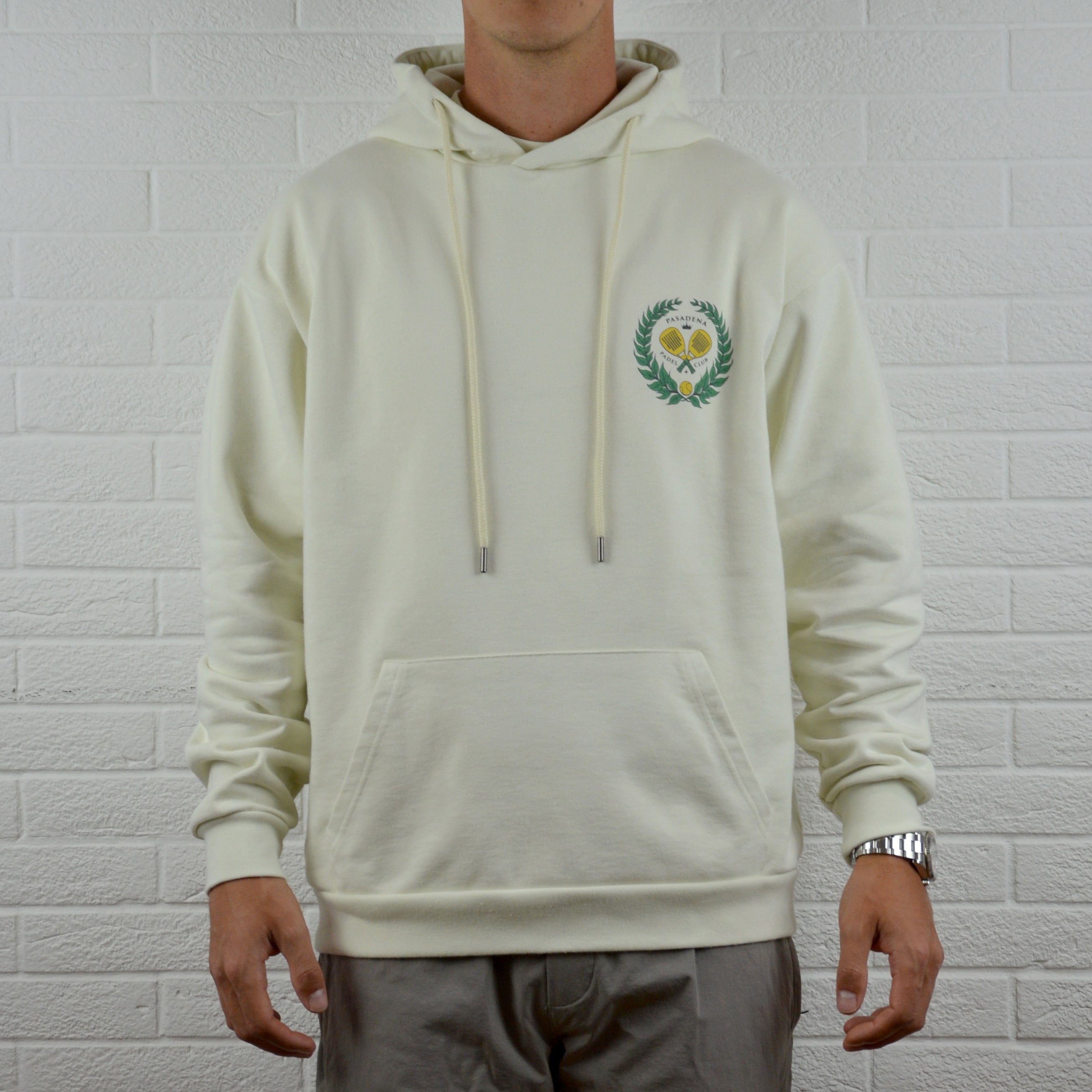 A core piece from our first collection, blending comfort and understated style. Crafted from premium heavyweight cotton, with a vintage texture, it features a relaxed, oversized fit and our signature Pasadena Padel Club wreath graphic on the front and back. The soft neutral tone gives it a clean, elevated look, perfect for layering pre-match, post-match, or everyday wear.